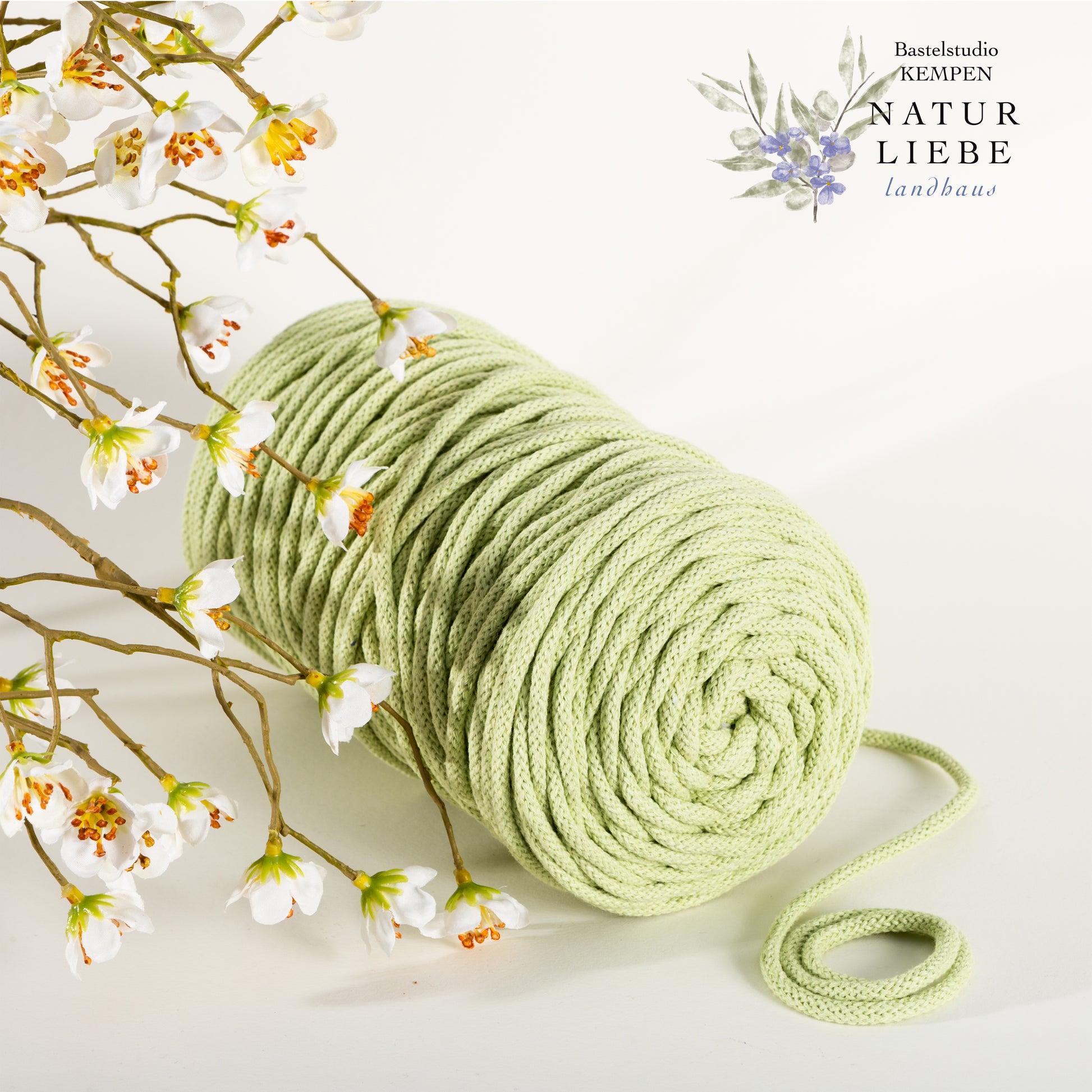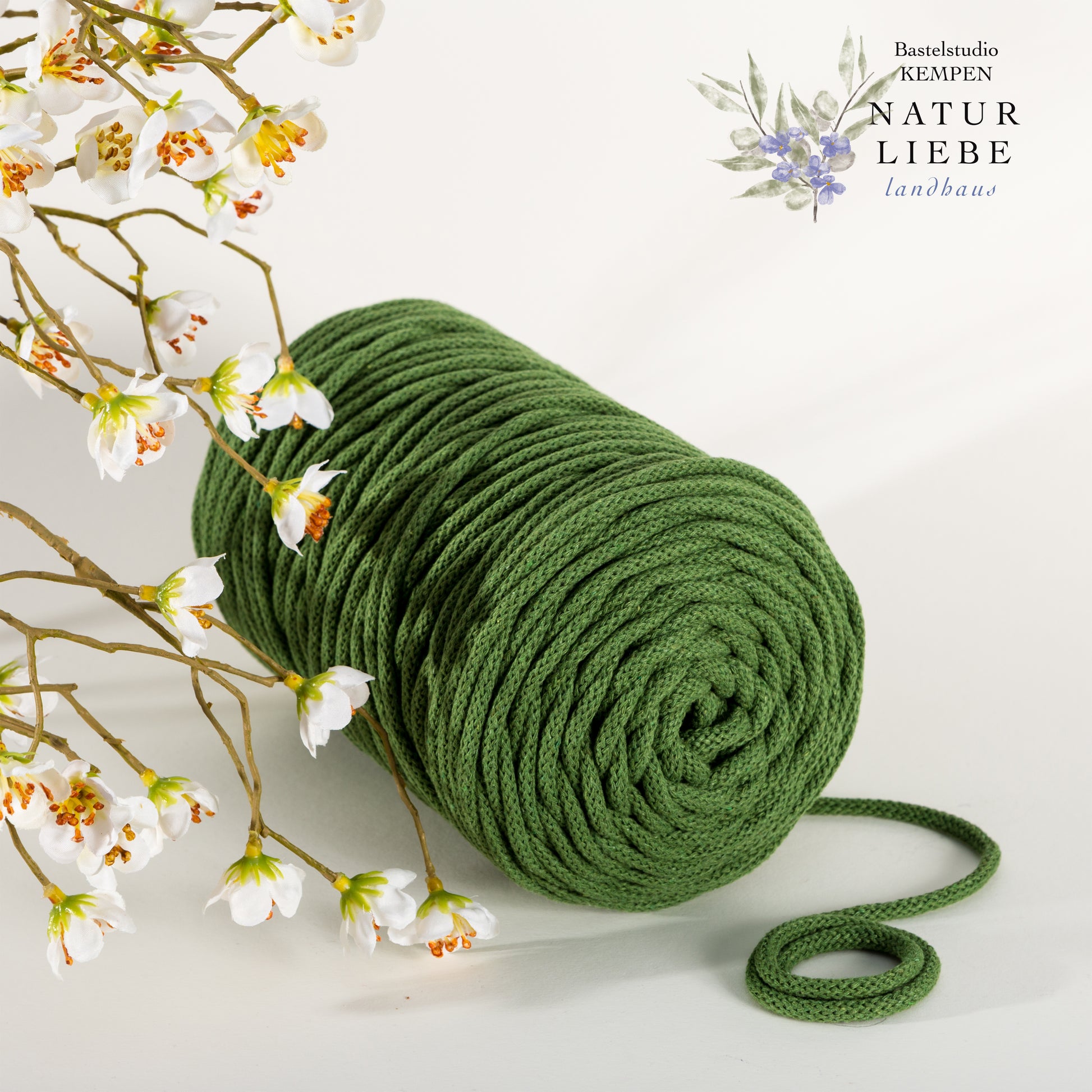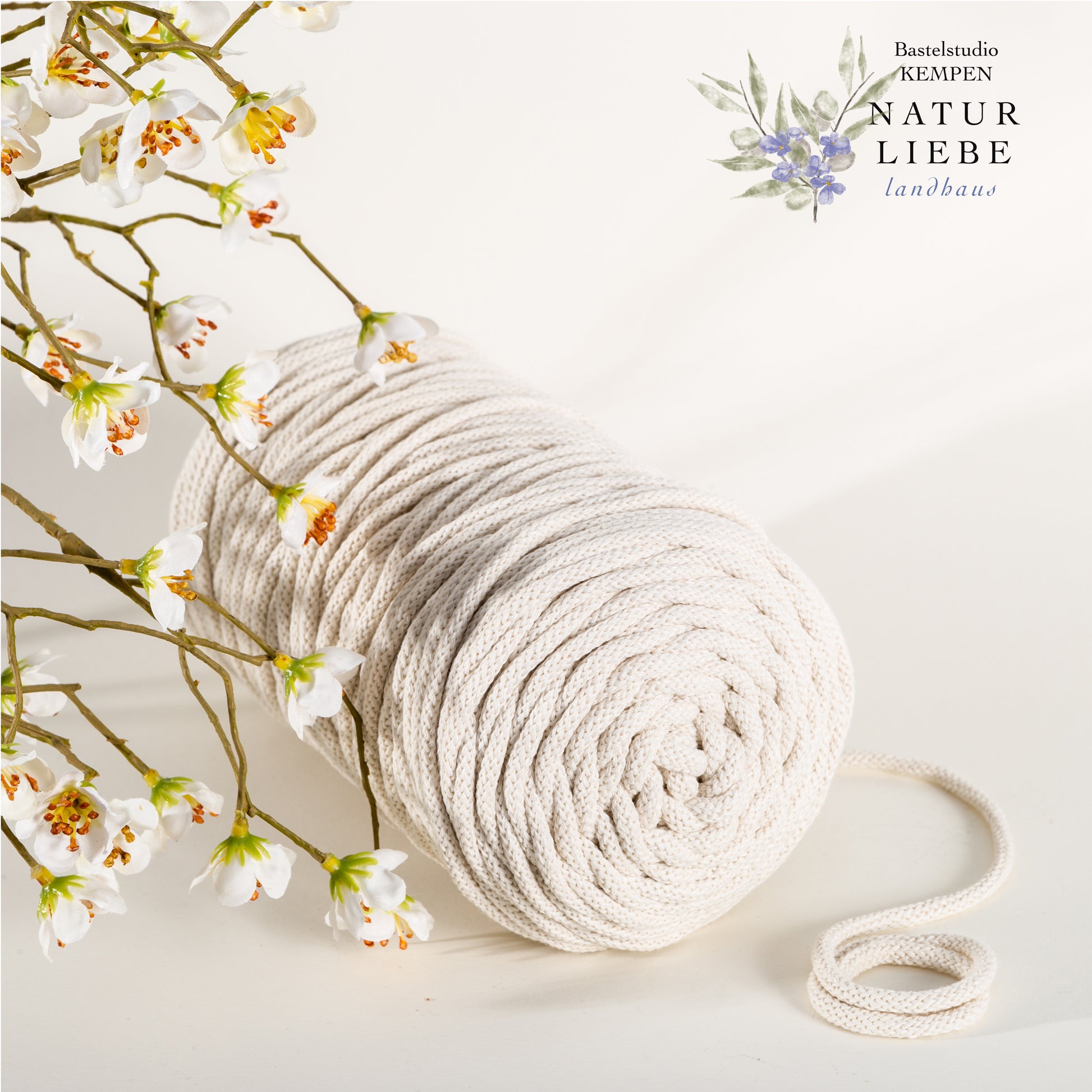 Hochwertiges, geflochtenes Garn aus 100% Baumwolle mit einem Durchmesser von 5 mm. Das Garn ist weich, angenehm im Griff und gleichzeitig sehr formstabil. Sie eignet sich perfekt für das Häkeln und Flechten von Körbchen, Taschen, Makramee, Untersetzern und anderen Wohnaccessoires. Dank ihrer gleichmäßigen Struktur lässt sich das Garn leicht verarbeiten und behält beim Arbeiten ihre Form, ohne sich zu verdrehen oder auszufasern. Ideal für Anfänger und Fortgeschrittene.