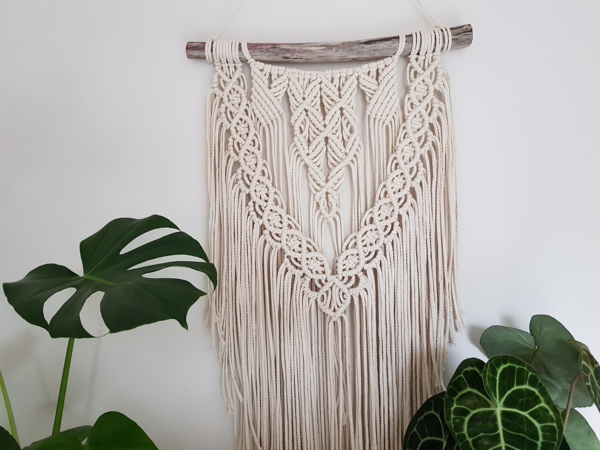 Alle Produkte sind einzigartig. Da es sich um handgemachte, Naturprodukte handelt kann die bestellte Kunst natürlich ein wenig vom Bild abweichen. Ich benutze nur natürliche und hochqualitative Produkte. Mein Garn ist 100% aus Baumwolle in EU produziert. Das Makramee ist 40cm breit 45cm lang