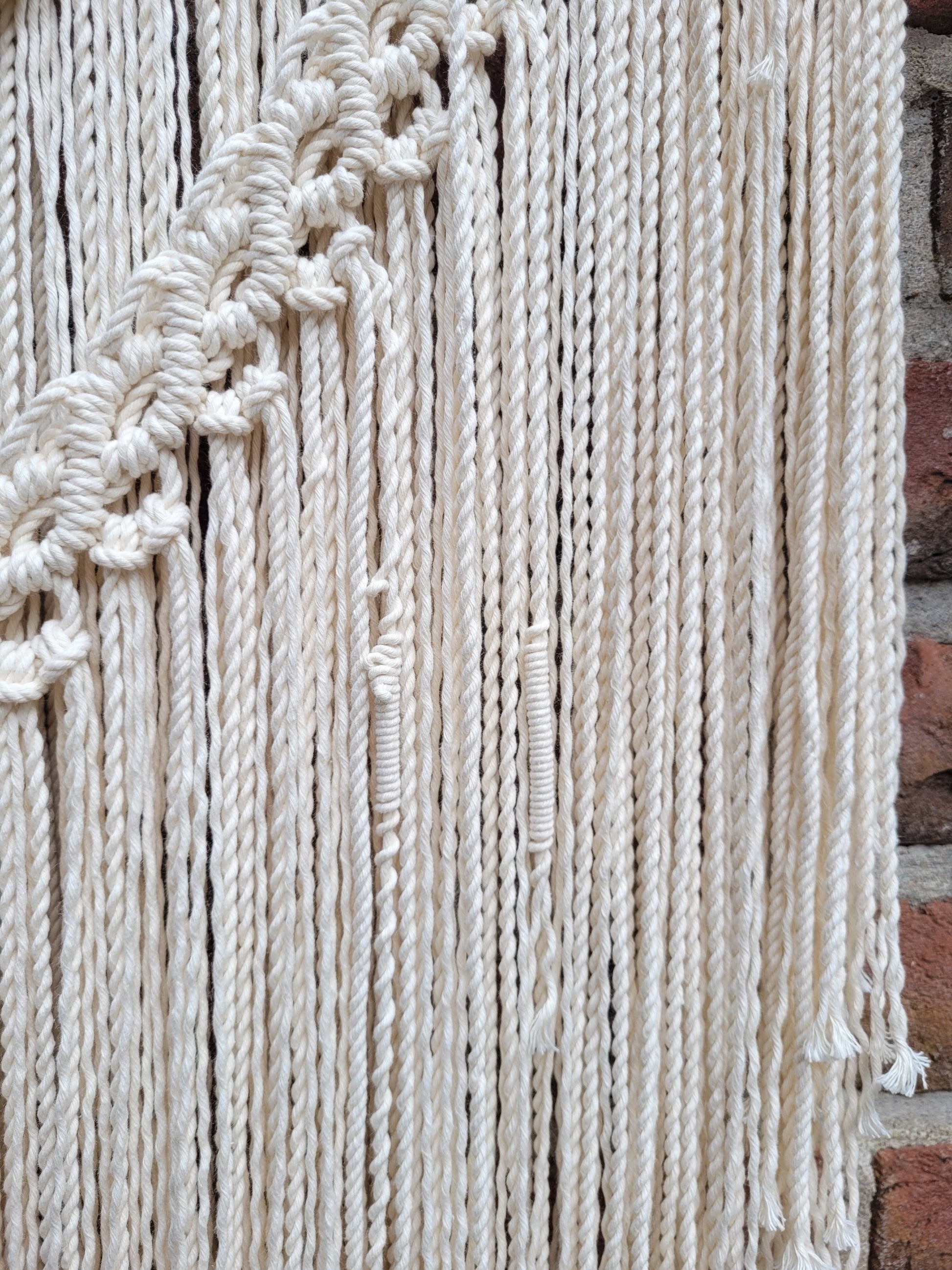 Alle Produkte sind einzigartig. Da es sich um handgemachte, Naturprodukte handelt kann die bestellte Kunst natürlich ein wenig vom Bild abweichen. Ich benutze nur natürliche und hochqualitative Produkte. Mein Garn ist 100% aus Baumwolle in EU produziert. Das Makramee ist 80cm breit 80cm lang