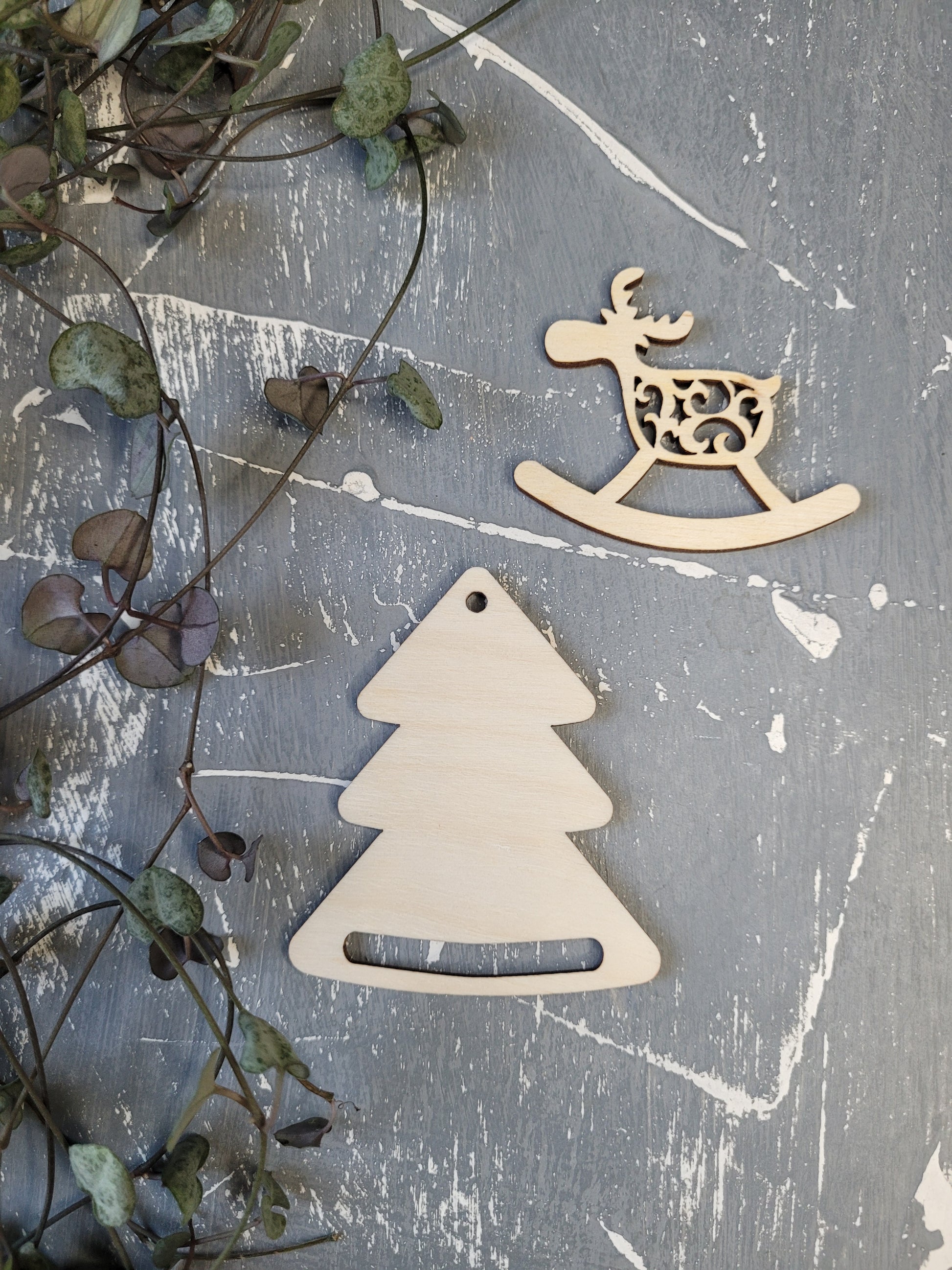 Weihnachts-Special Holzfiguren in zwei verschiedenen Formen. Ideal zum Dekorieren mit Garn. Es lässt sehr viele Entfaltungsmöglichkeiten für Deine Kreativität.